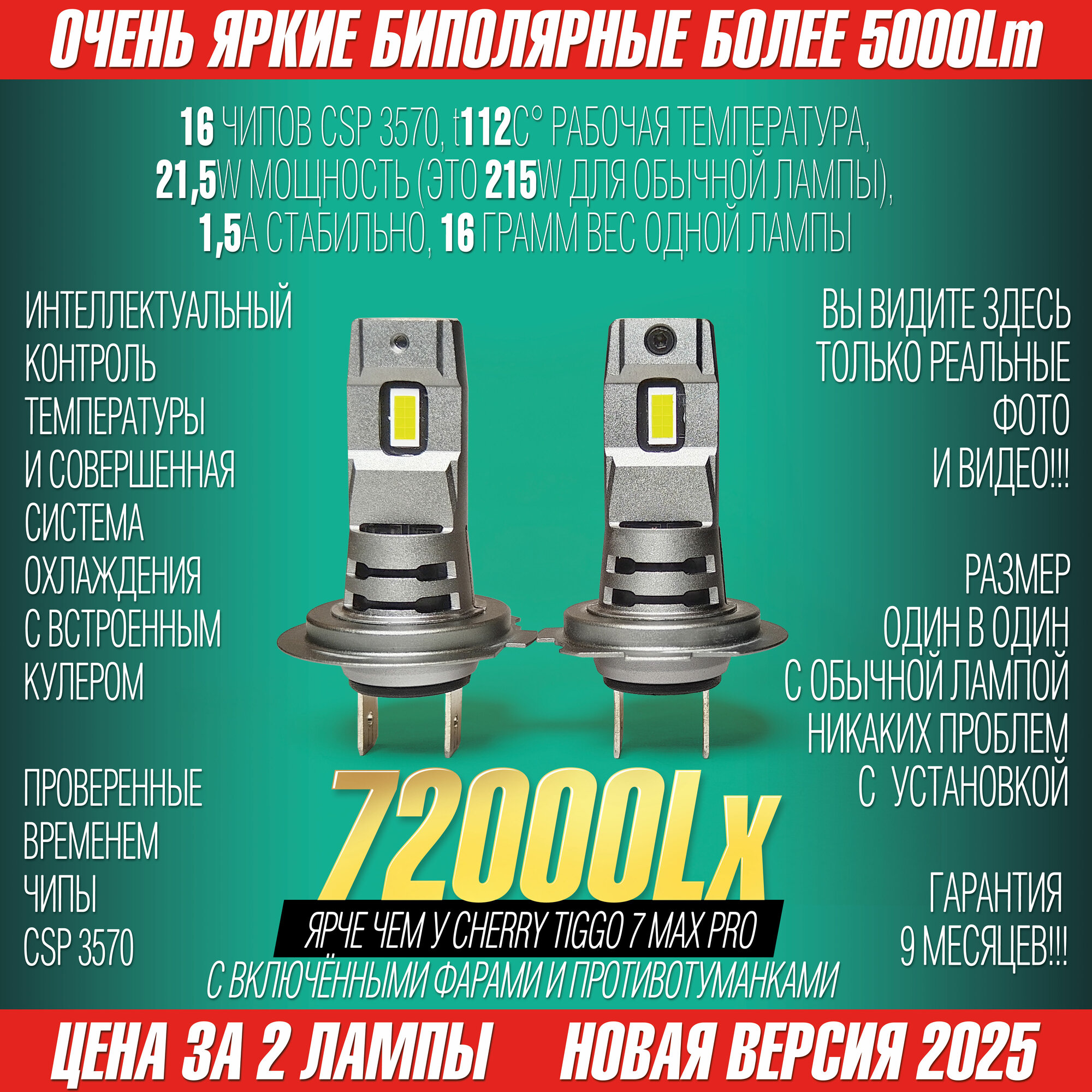 Отзывы на H7 LED светодиодные лампы 6500K 12V CSP 3570 (16 чипов) 72000Lx ближний дальний яркие биполярные