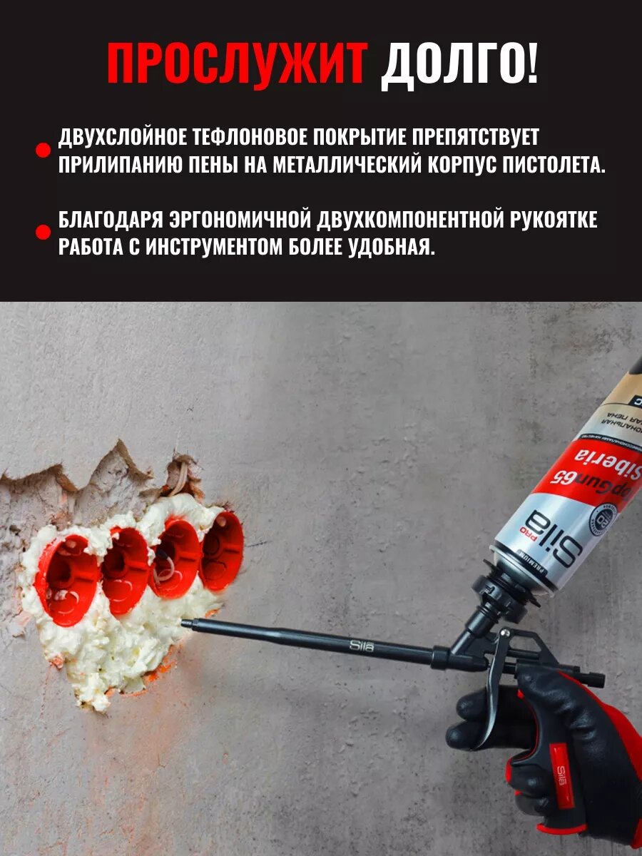 Профессиональный пистолет для монтажной пены SILA с двойным тефлоновым покрытием корпуса и сопла информация: