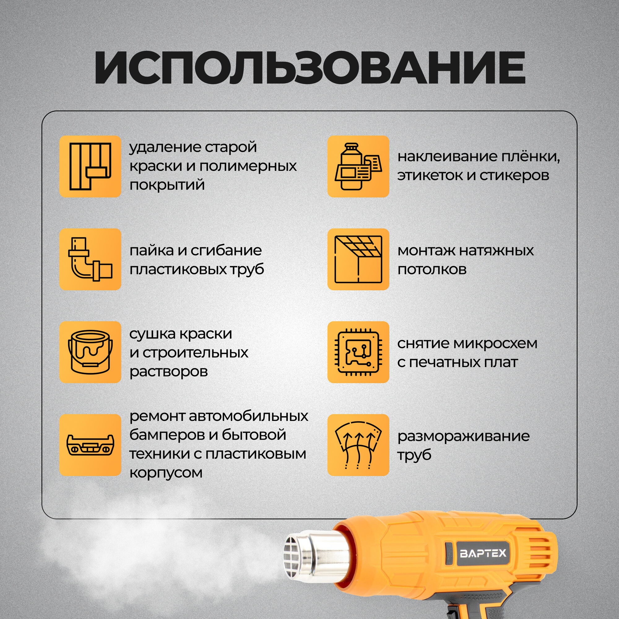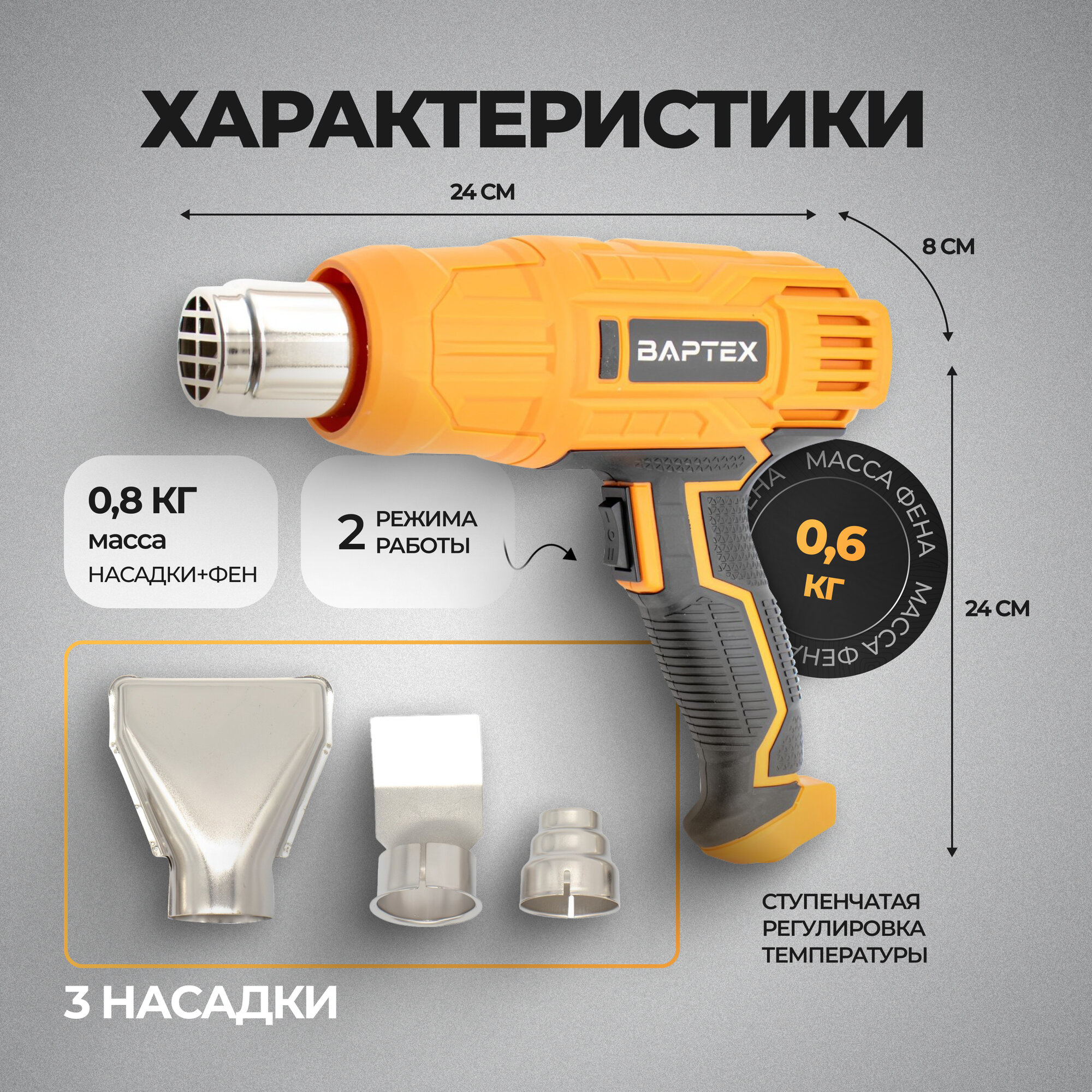 Отзывы на Строительный фен ВАРТЕХ, 2 режима, 2 насадки, 2100Вт, максимальная температура 300°C