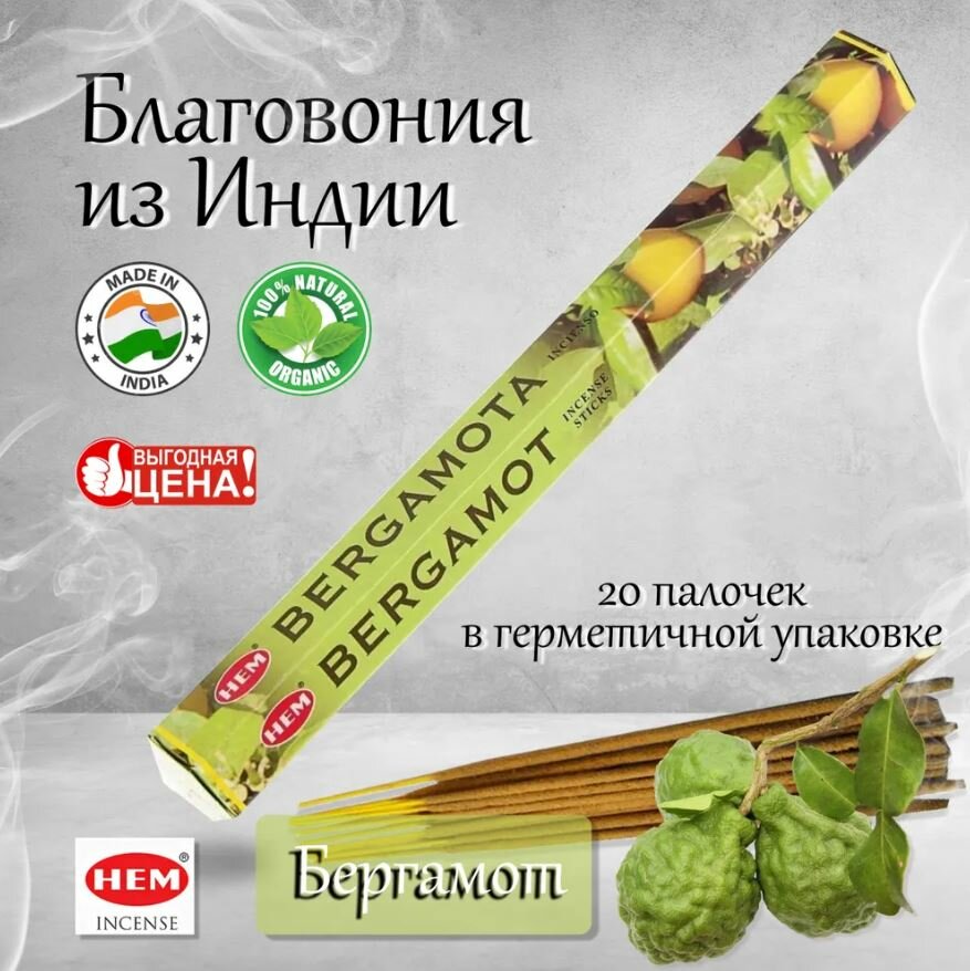 10 цен на Благовония HEM "Bergamot", аромат бергамот, шестигранник, 20 палочек