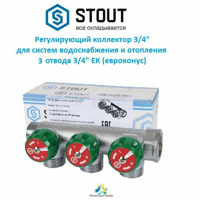 Регулирующий коллектор STOUT 3/4, 3 отвода 3/4, евроконус информация: