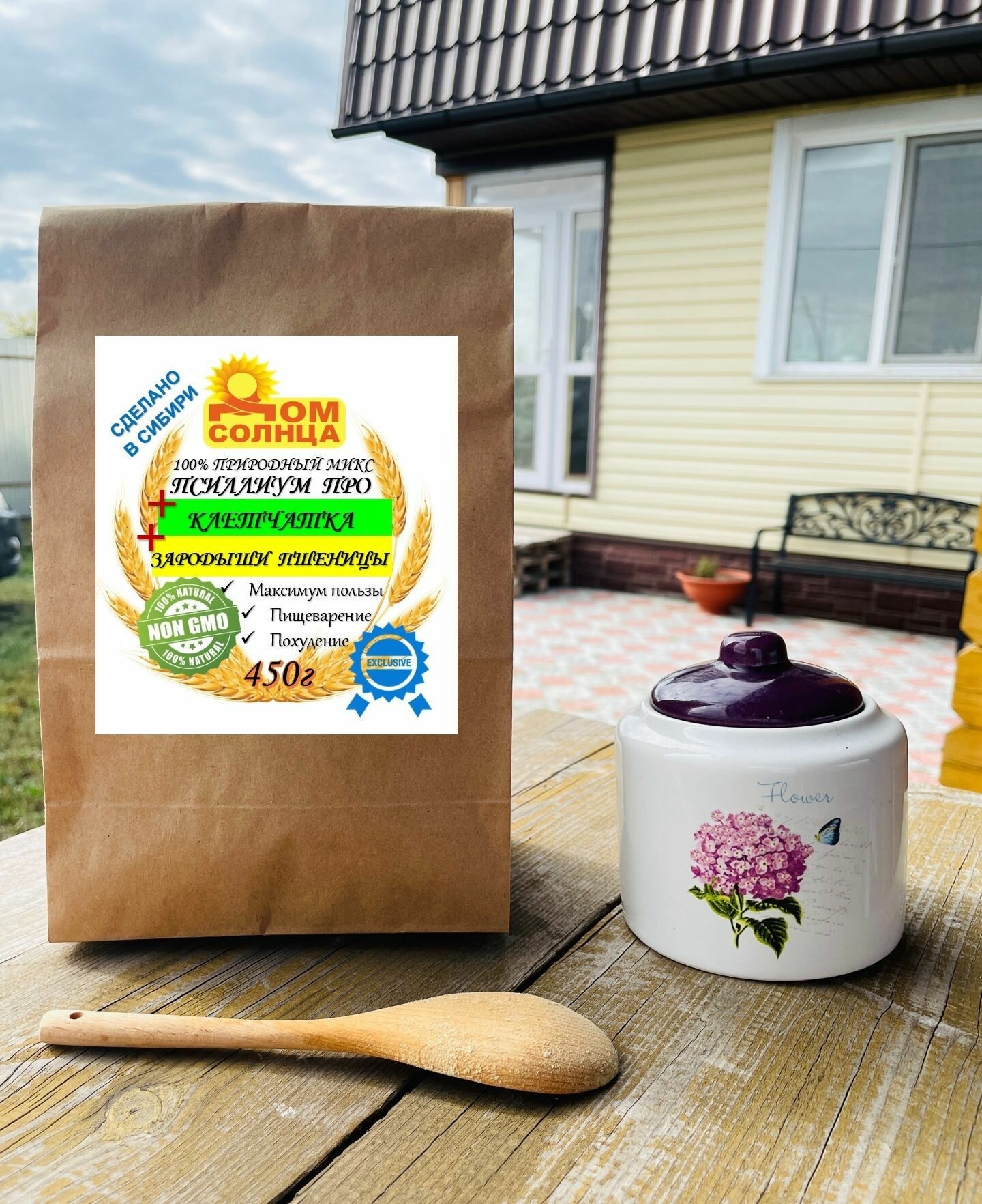 Микс 3 в 1 - 450гр: псиллиум Про + Зародыши пшеницы + Клетчатка Сибирская. 100% Свежая. Пр-во под заказ! "Живая" - Без нагрева и обработки! Эффект за 3 дня! Для похудения и здорового питания. информация: