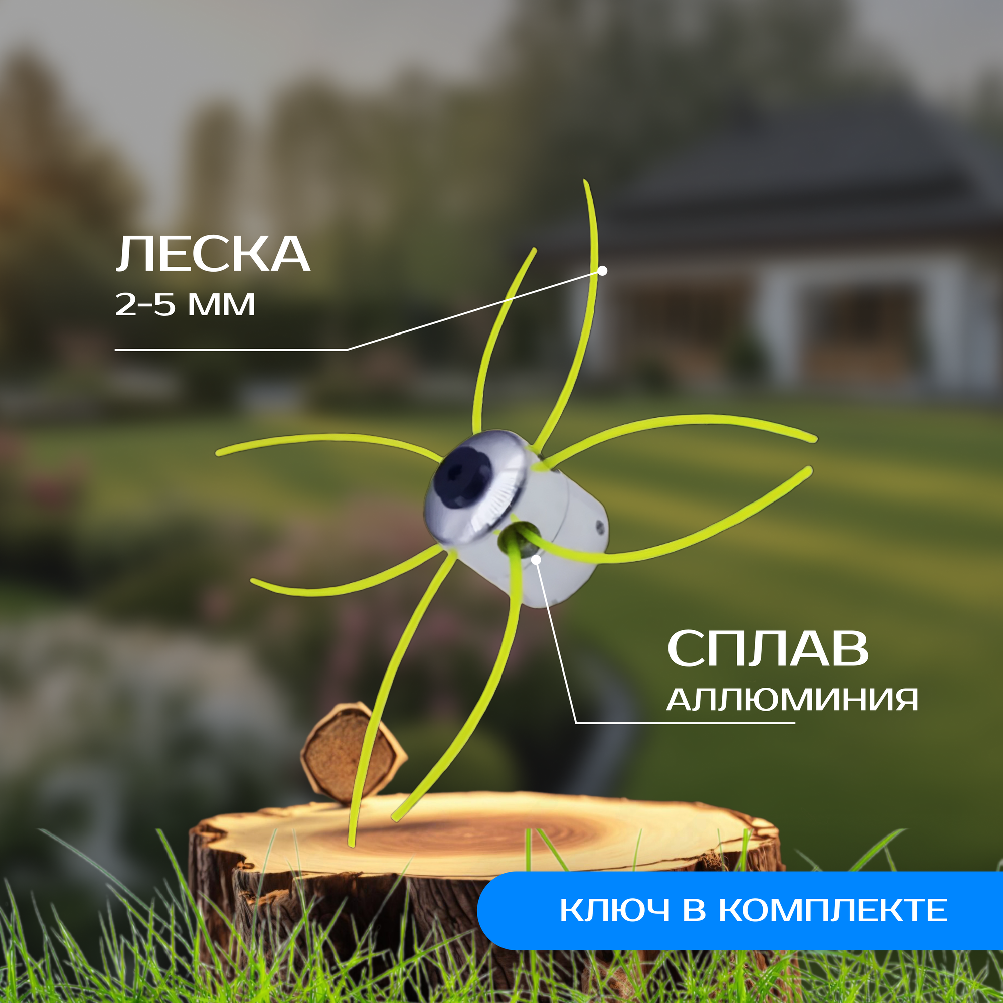 | Дополнительная информация | тип подачи лески: ручной; посадочный диаметр: универсальный; в комплекте: корпус головки состоящий из двух частей, прижимной винт - ключ шестигранный, шайба 8 мм, шайба 10 мм, леска 27 см - 4 шт; используется для срезания любых видов травы; головка предусматривает выход лески с четырех сторон |