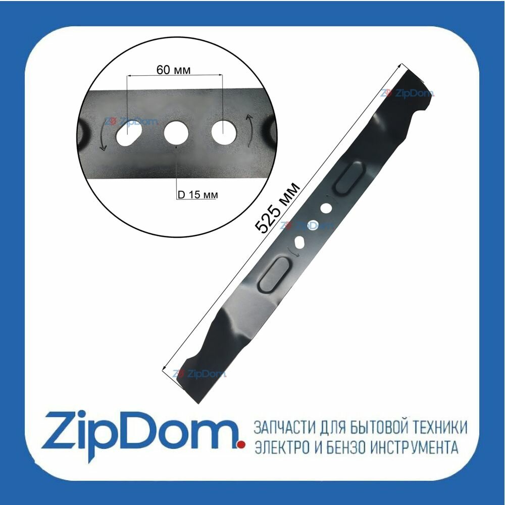 Нож подходит для газонокосилки бензиновой CHAMPION C5098 LM5345BS (до 2016 года) D5-5A-002-000, L - 525 мм информация: