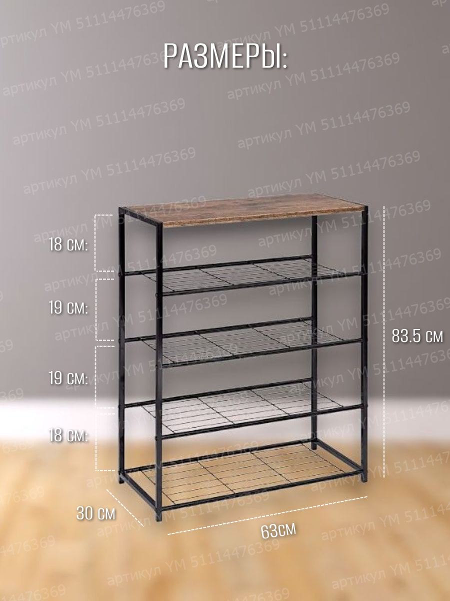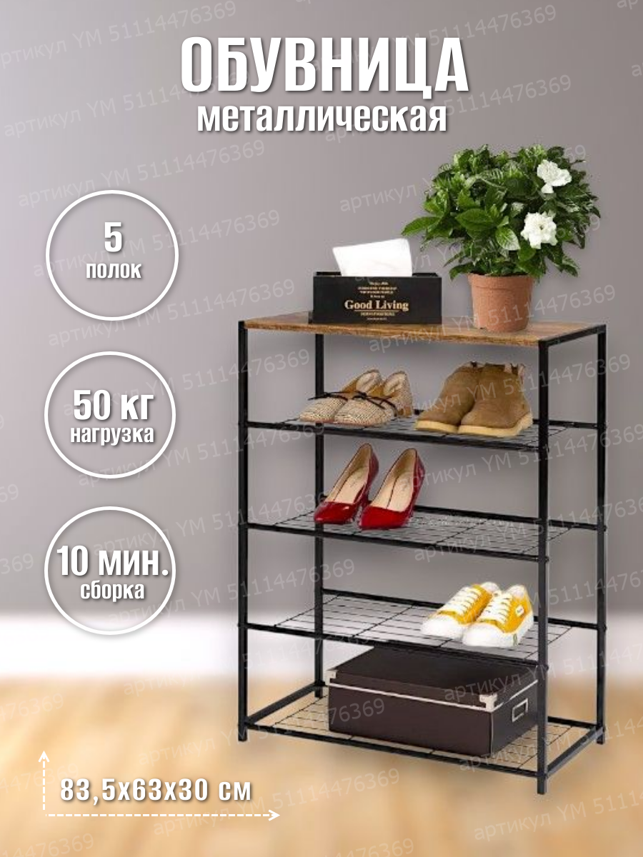Обувница в прихожую металлическая открытая, Этажерка для обуви в прихожую, Полка для обуви, Стеллаж 5 ярусов 1 000 ₽