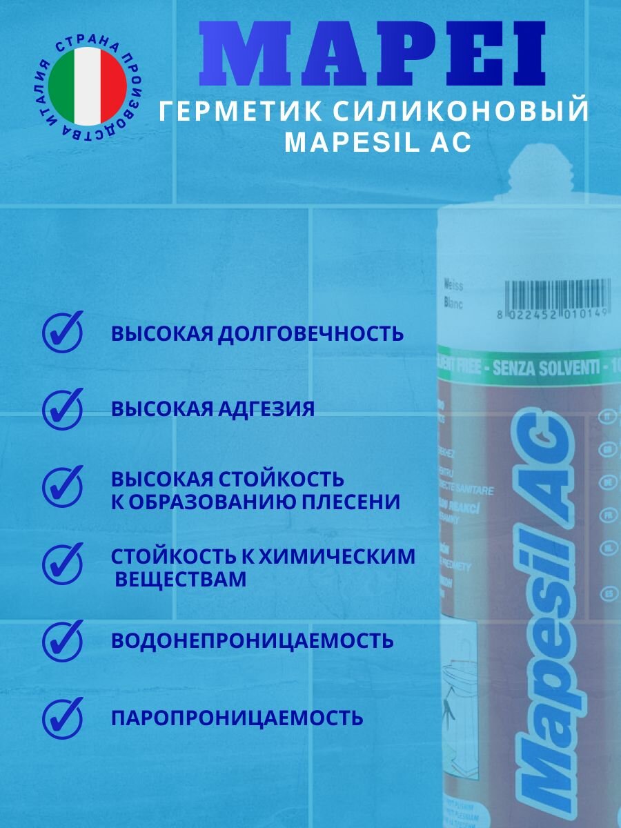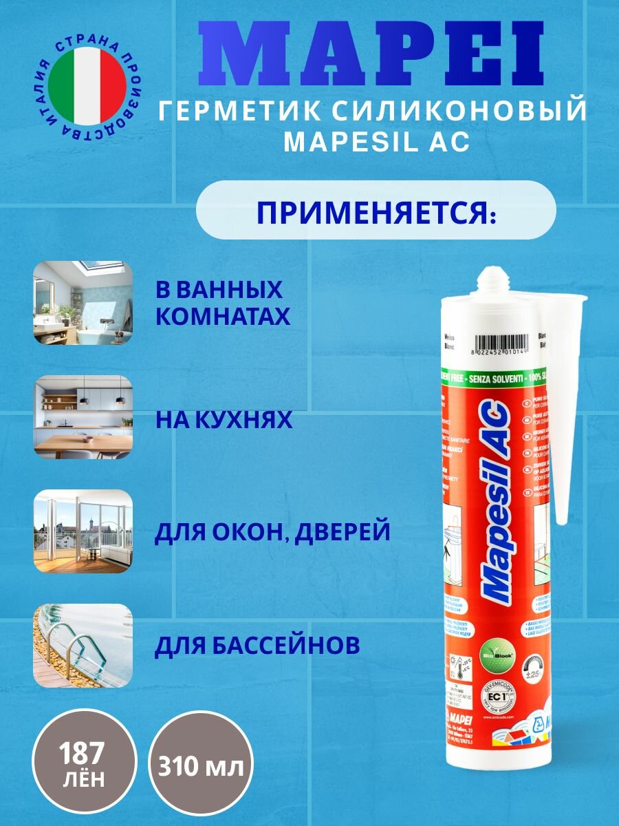Герметик силиконовый Mapei Mapesil AC №134 шелк, 310 мл / герметик силиконовый для ванной, для кухни 2 317 ₽