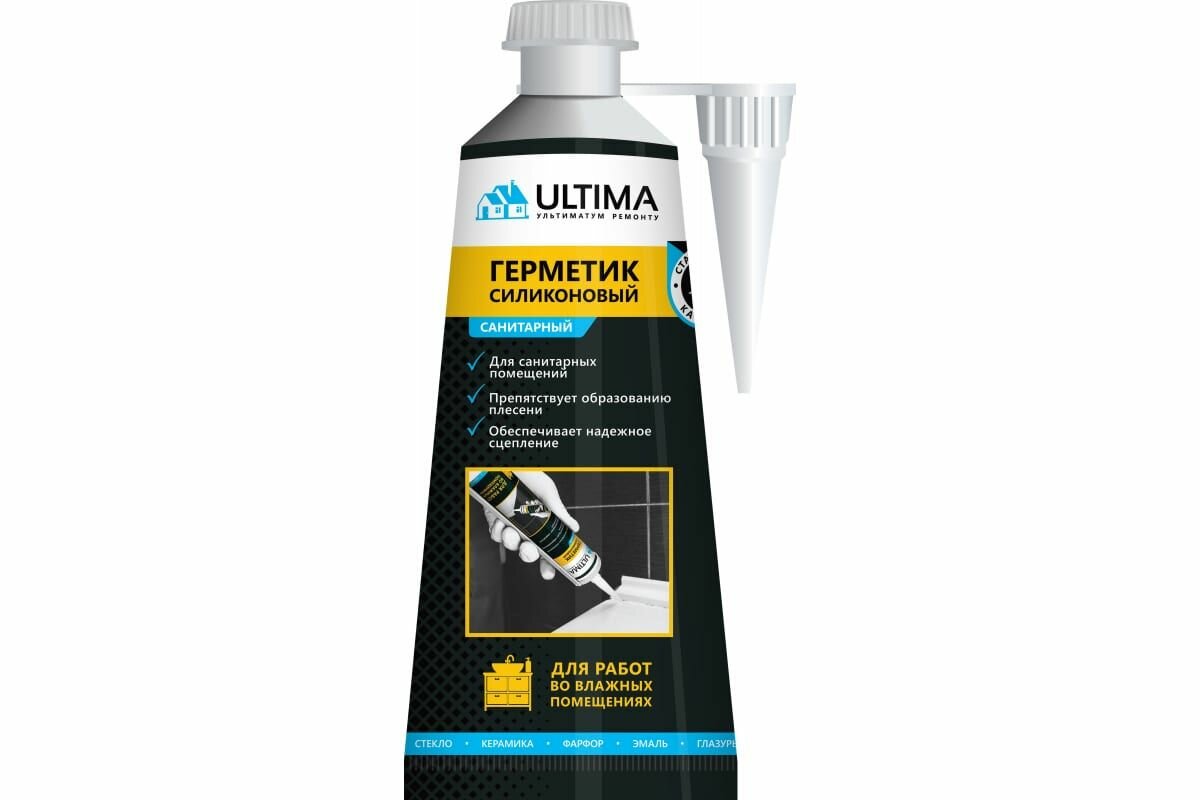 10 цен на Силиконовый санитарный герметик ULTIMA Белый 80 мл, для ремонтных работ в помещениях с повышенной влажностью