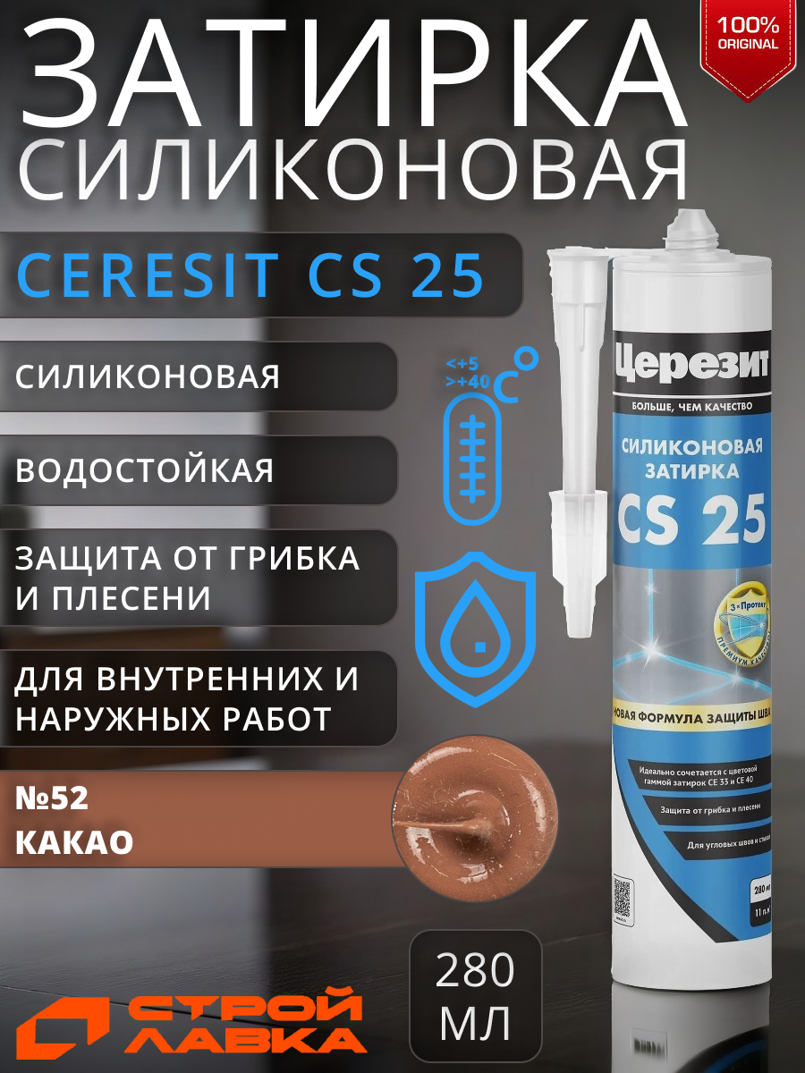 Мы выбрали 10 лучших цен на Затирка-герметик силиконовая Церезит CS 25 №52 какао 280 мл / для ванной, кухни. Перед тем как купить Затирка-герметик силиконовая Церезит CS 25 №52 какао 280 мл / для ванной, кухни посмотрите найденные предложения из Яндекс Маркета и других сайтов на основе XML фидов.