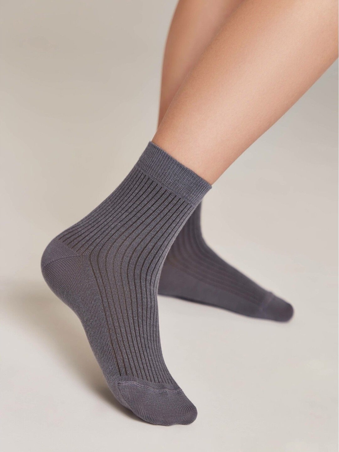 Носки детские классические из хлопка и LYCRA® Conte-kids Tip-Top, размер 22(33-35), рисунок 932- В рубчик, цвет Графит 209 ₽