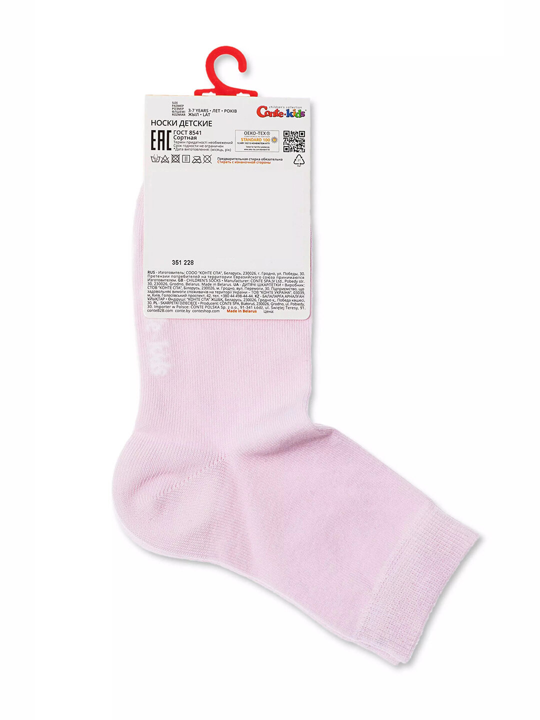 Носки детские классические из хлопка и LYCRA® Conte-kids Tip-Top, размер 22(33-35), рисунок 476, цвет Светло-розовый 209 ₽
