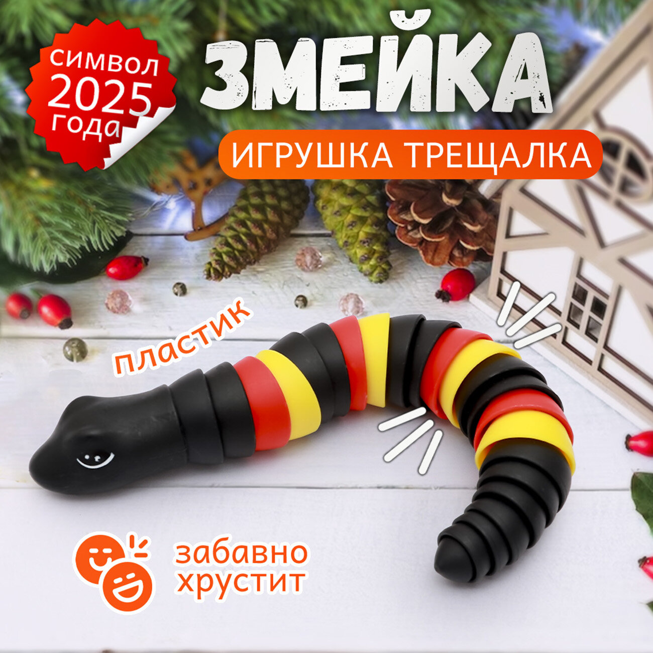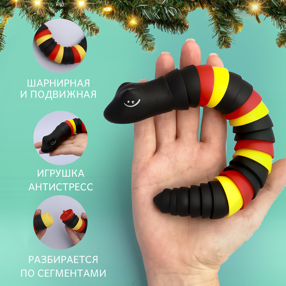 Отзывы на Игрушка антистресс Погремушка трещалка Змея черная, развивающая для детей, подарок на новый год, символ года 2025