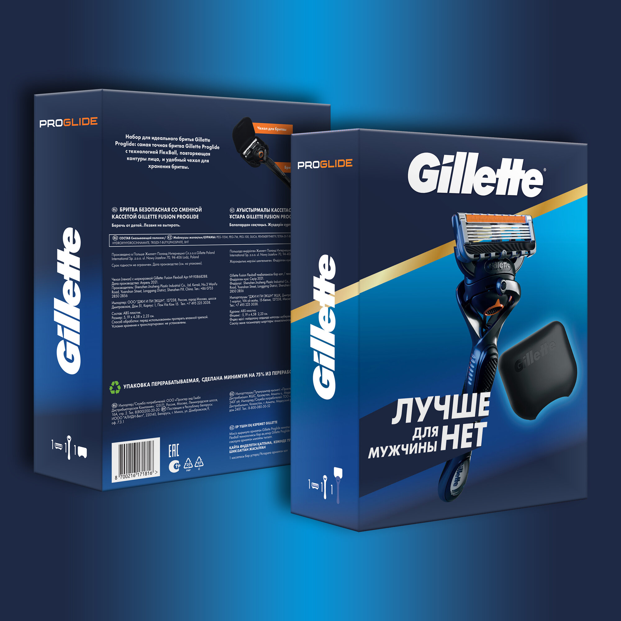 10 цен на Подарочный набор мужской для идеального бритья Gillette ProGlide с чехлом для бритвы