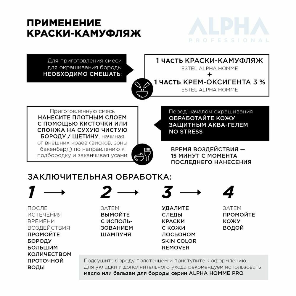 Краска-камуфляж для бороды ESTEL ALPHA PRO 1/0 черный, 40 мл. 450 ₽