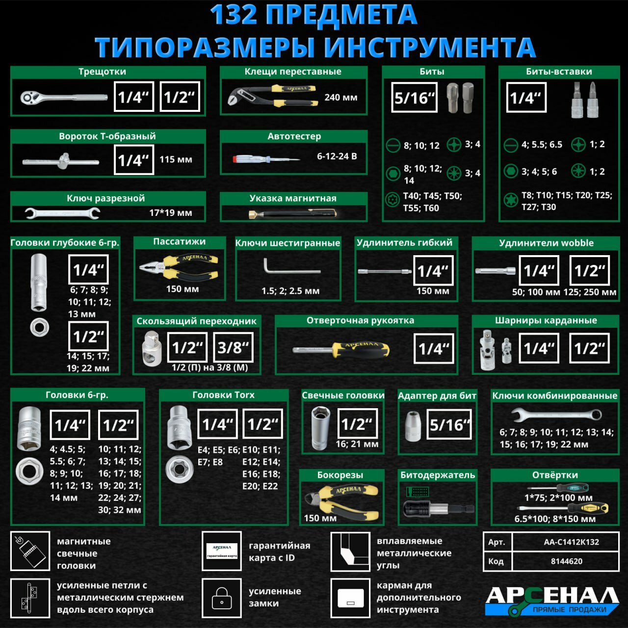 Набор инструментов арсенал AUTO 132 предмета NEW АА-С1412К132 информация: