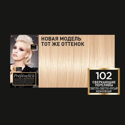L'Oreal Paris Preference стойкая краска для волос, 102 (10.2) Сверкающие переливы Светло-светло русый жемчужный 914 ₽