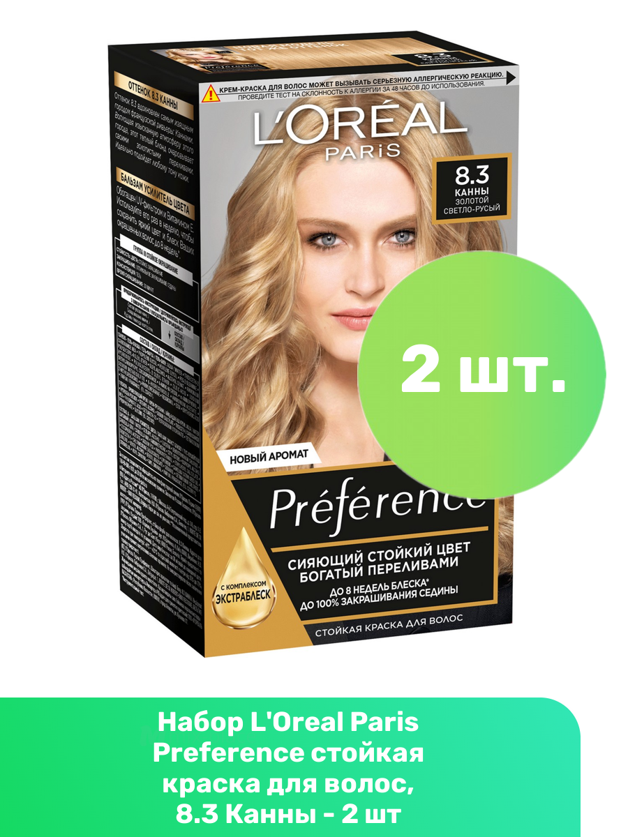 L'Oreal Paris Preference стойкая краска для волос, 8.3 Канны - 2 шт информация: