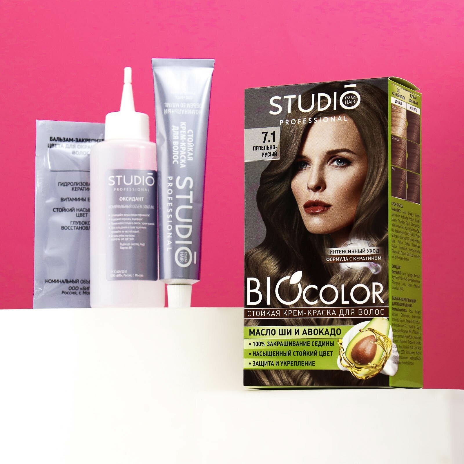 Крем-краска для волос STUDIO Biocolor, тон 7.1 Пепельно-русый, 115 мл
