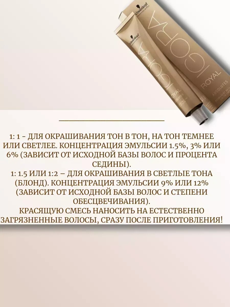 Краска для волос Schwarzkopf Professional Igora Color Igora Royal, Крем-краска стойкая для волос, 9.5-22
