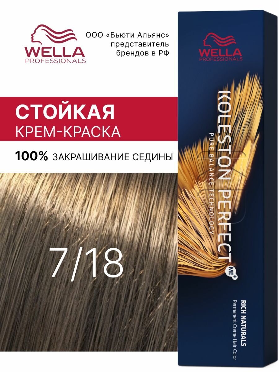 Стойкая крем-краска Wella Professionals Koleston Perfect Rich Naturals 7/18, 60 мл информация: