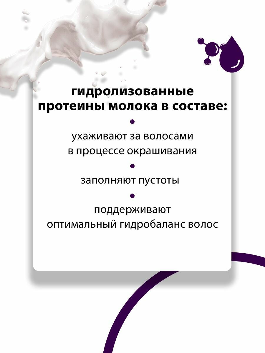 | Состав | AQUA (WATER), CETEARYL ALCOHOL, STEARIC ACID, PROPYLENE GLYCOL, LANOLIN ALCOHOL, PAFAFFINUM LIQUIDUM, AMMONIUM HYDROXIDE, SODIUM LAURETH SULFATE, STEARIC ACID, PALMITIC ACID, SODIUM SULFITE, PARFUM (FRAGNANCE), HYDROLIZED MILK PROTEIN, DISODIUM EDTA, TOLUENE-2,5-DIAMINE SULFATE, 2-AMINO-6-CHLORO-4-NITROPHENOL, RESORCINOL, P-AMINOPHENOL, M-AMINOPHENOL, PHENOXYETHANOL, ETHYLHEXYLGLYCERIN |