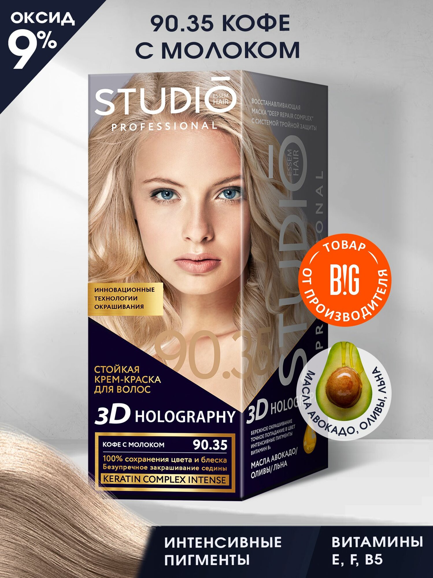 Studio стойкая крем-краска для волос 3Д Голографик 90.35 Кофе с молоком 50/50/15 мл информация: