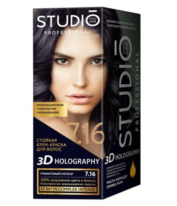 Крем-краска для волос Studio, Professional Professional 3D Holography, 7.16 Графитовый метеор, 115 мл, 3 шт 969 ₽