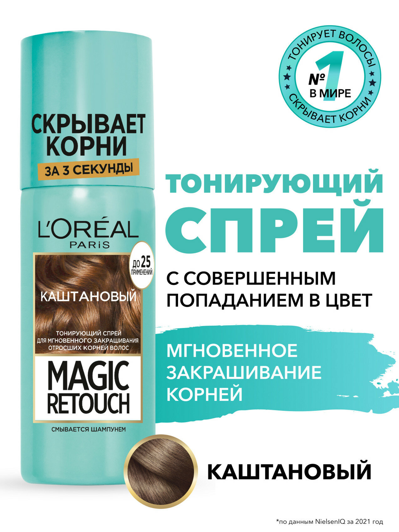 Спрей L'Oreal Paris Magic Retouch для мгновенного закрашивания отросших корней волос, оттенок Каштановый