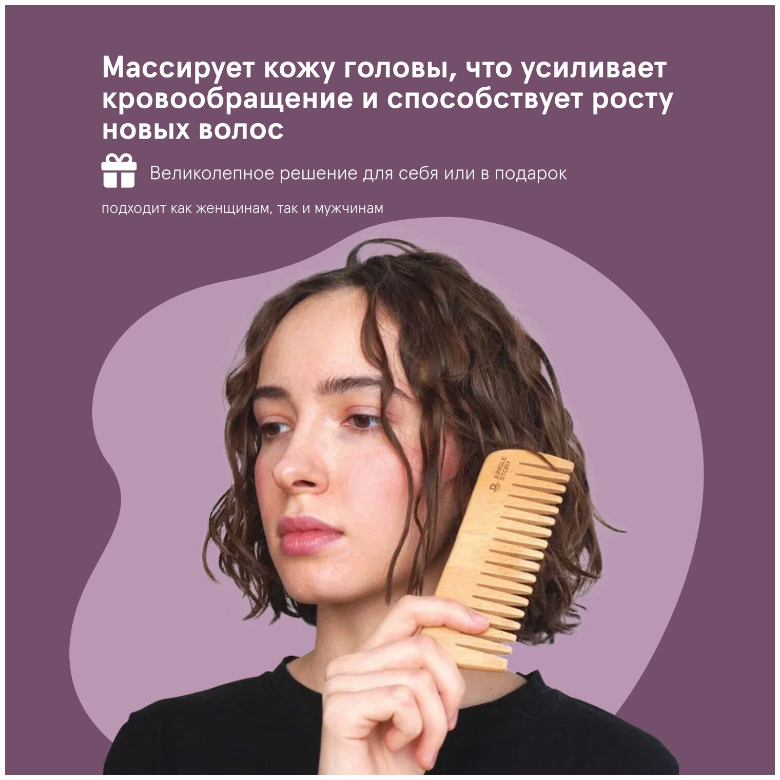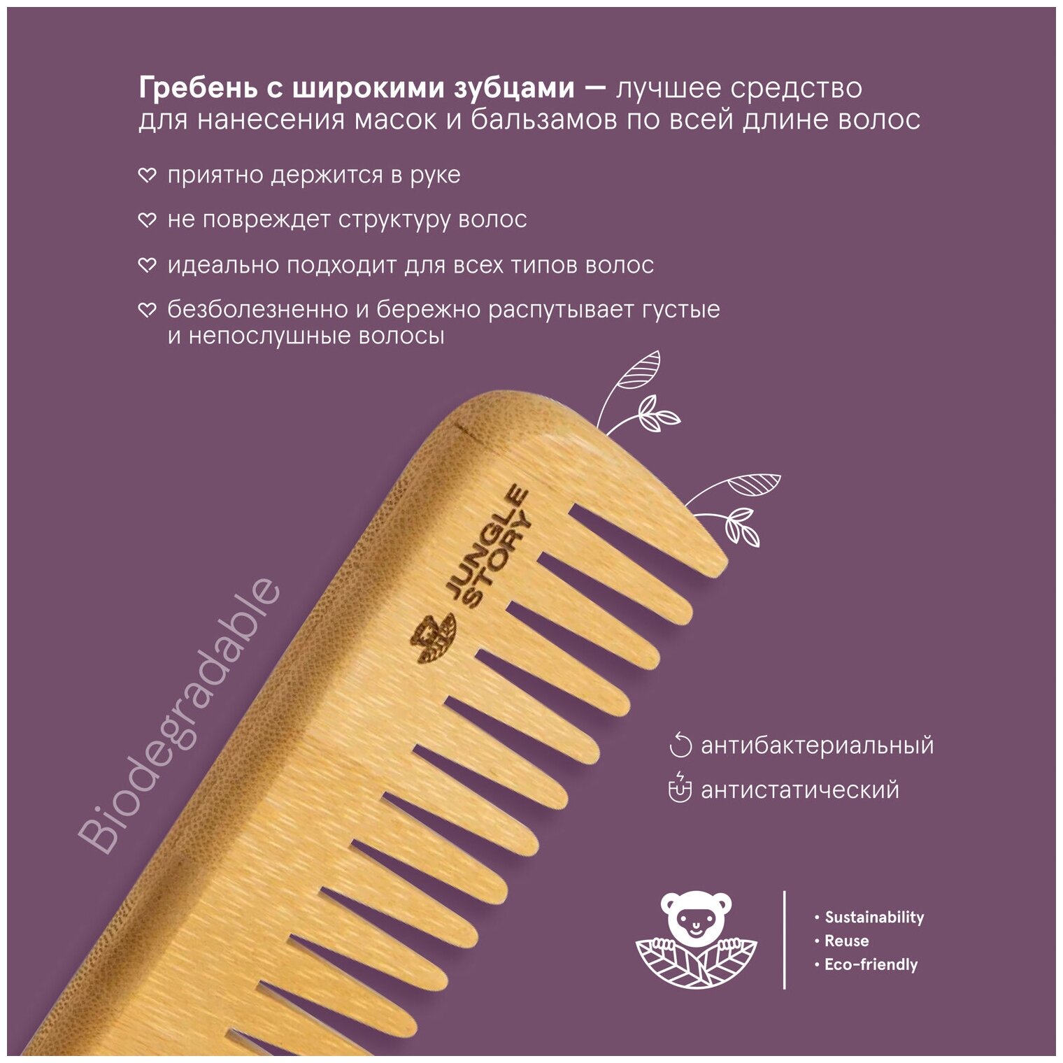 Расческа-гребень Jungle Story, для вьющихся волос, из бамбука информация: