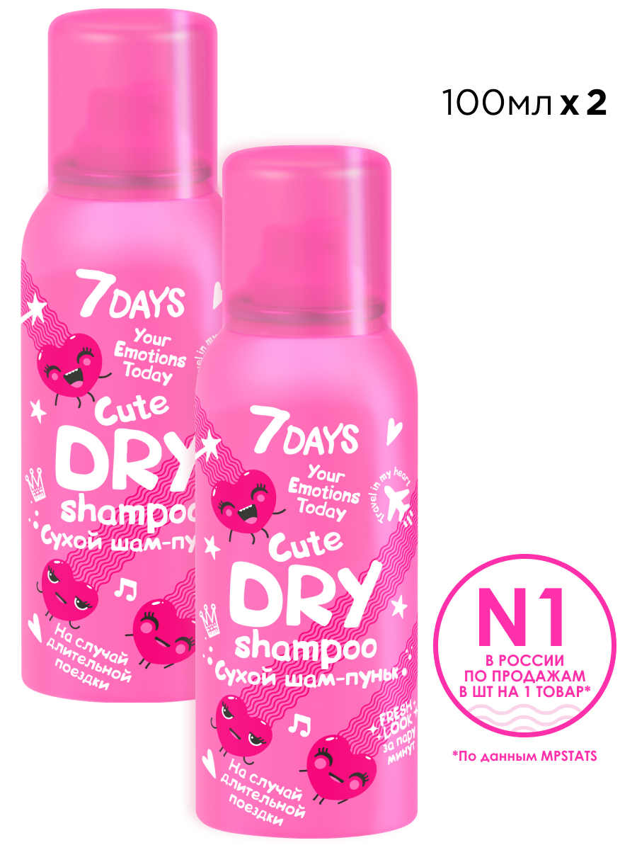 10 цен на 7DAYS Сухой шампунь для объема волос, для всех типов волос, travel формат, набор 2 шт CUTE 2в1 мгновенное очищение