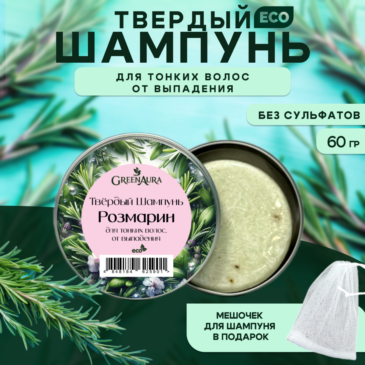 10 цен на Твердый шампунь "Розмарин" GreenAura, для тонких и ломких волос