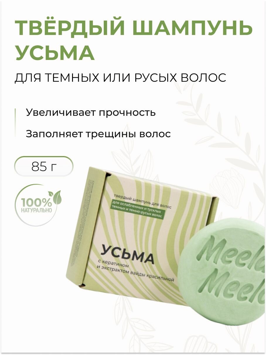10 цен на Meela Meelo Твердый шампунь для для ослабленных и тусклых темных волос "Усьма" с кератином и масляным экстрактом вайды, 85 гр