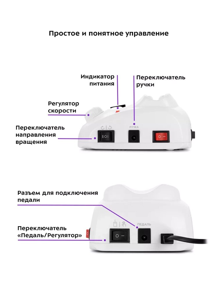 | Дополнительная информация | Предназначена для проведения процедур: - аппаратный/комбинированный маникюр и педикюр - снятие искусственного материала при наращивании и коррекции ногтей. |
