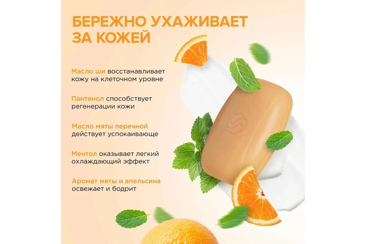 SYNERGETIC Натуральное туалетное мыло масло мяты и апельсин кусок 90гр