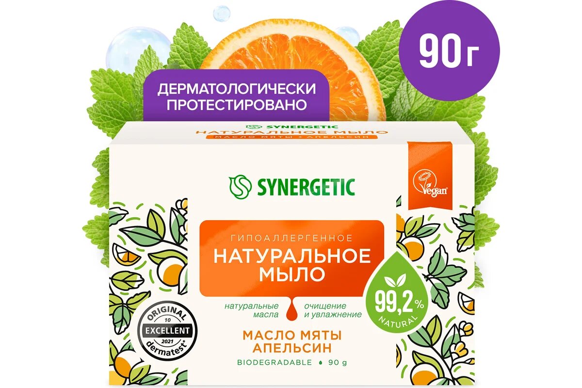 Гипоаллергенное натуральное туалетное мыло Synergetic масло мяты и апельсин, 90 г