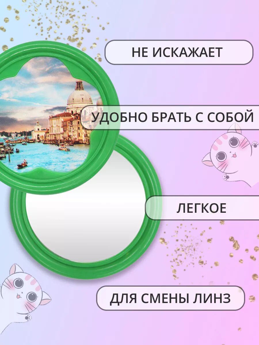 10 цен на Зеркало косметическое карманное круглое 5см зеленое