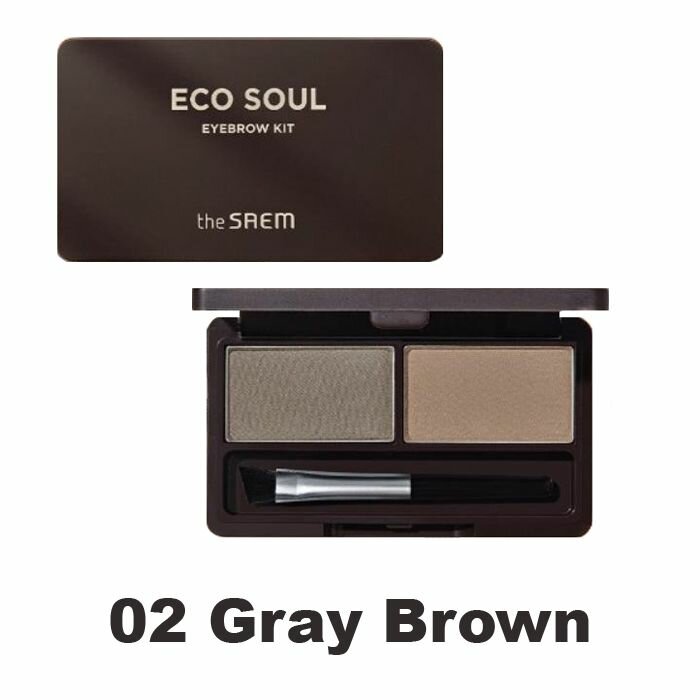 The Saem Палетка с двумя оттенками теней для бровей 5 г Eco Soul Eyebrow Kit, оттенок 02 Gray Brown информация: