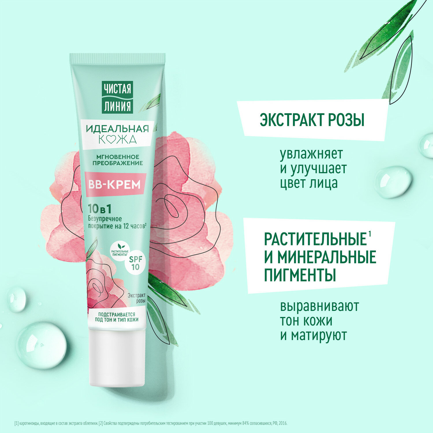 10 цен на Крем для лица тональный Чистая Линия Идеальная кожа вв-крем 10в1 Мгновенное преображение с экстрактом розы 40 мл, ,