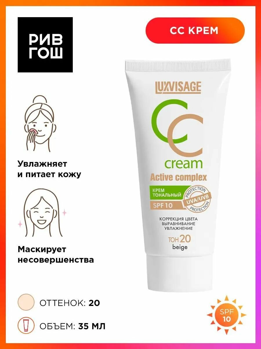 10 цен на LUXVISAGE Крем тональный CC Active complex SPF 10, 20 тон beige