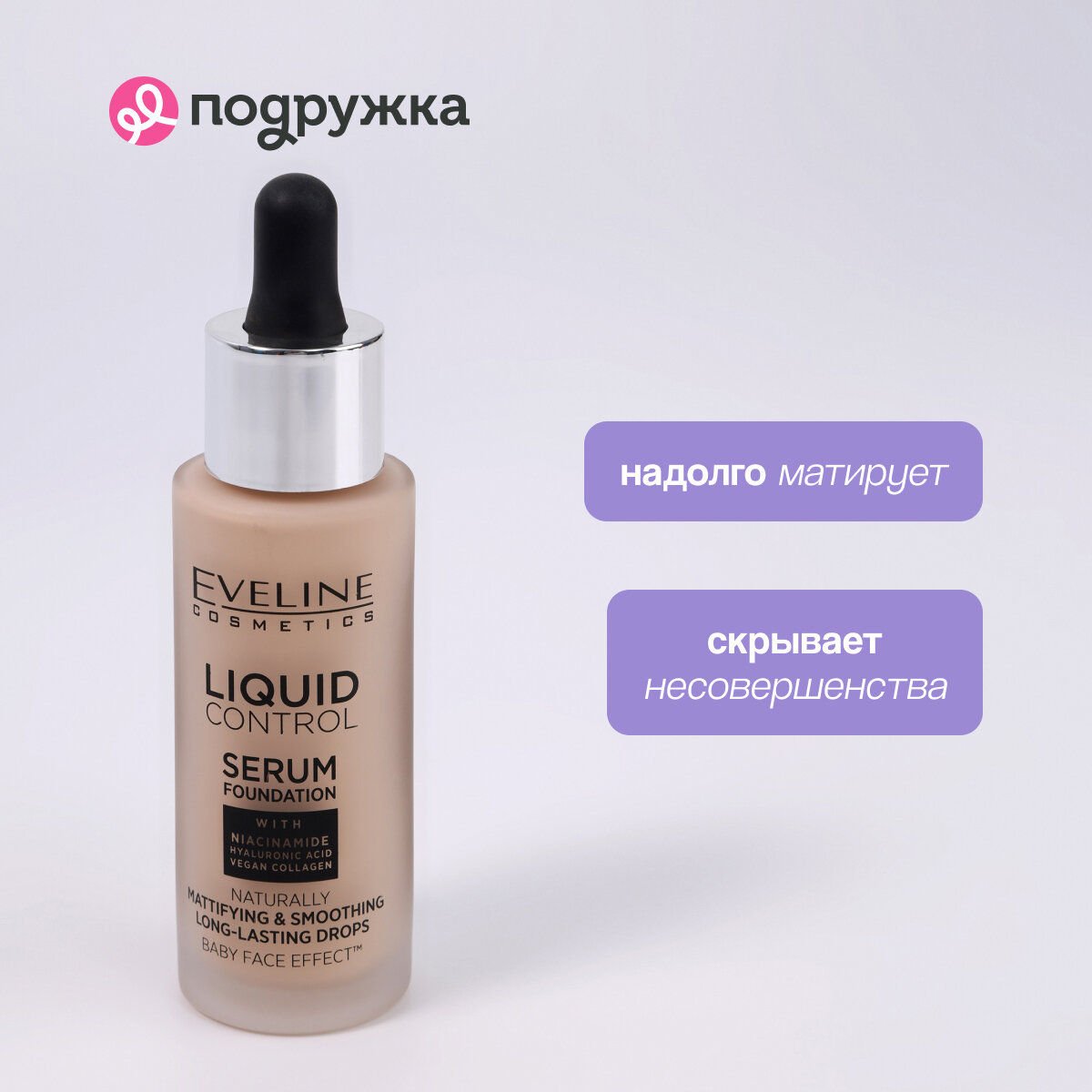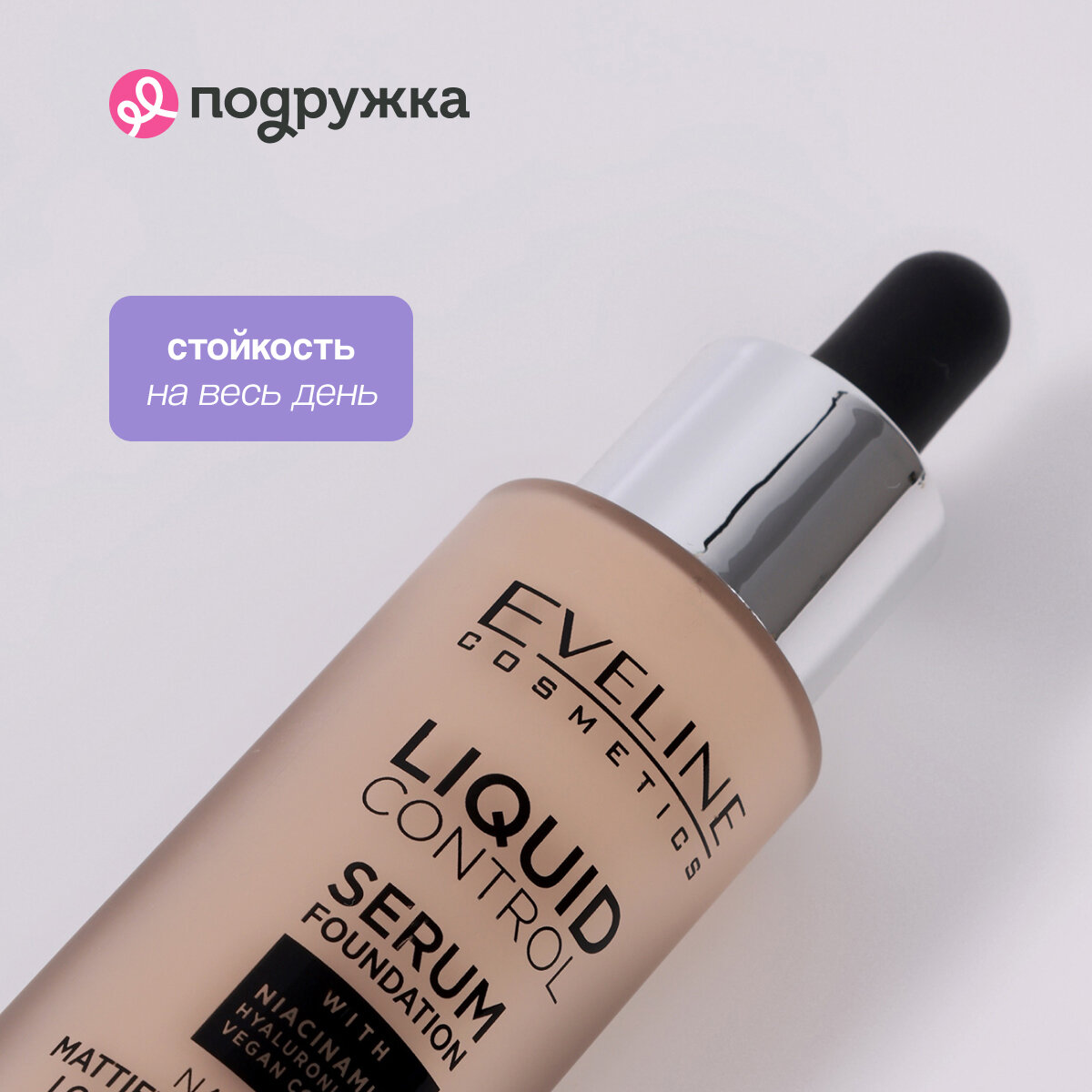 Тональная основа Eveline Liquid Control, инновационная, жидкая, 030, sand beige, 32 мл 600 ₽