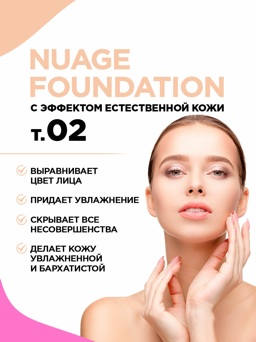 Тональный крем с эффектом естественной кожи Nuage Foundation, тон 02 светло-бежевый