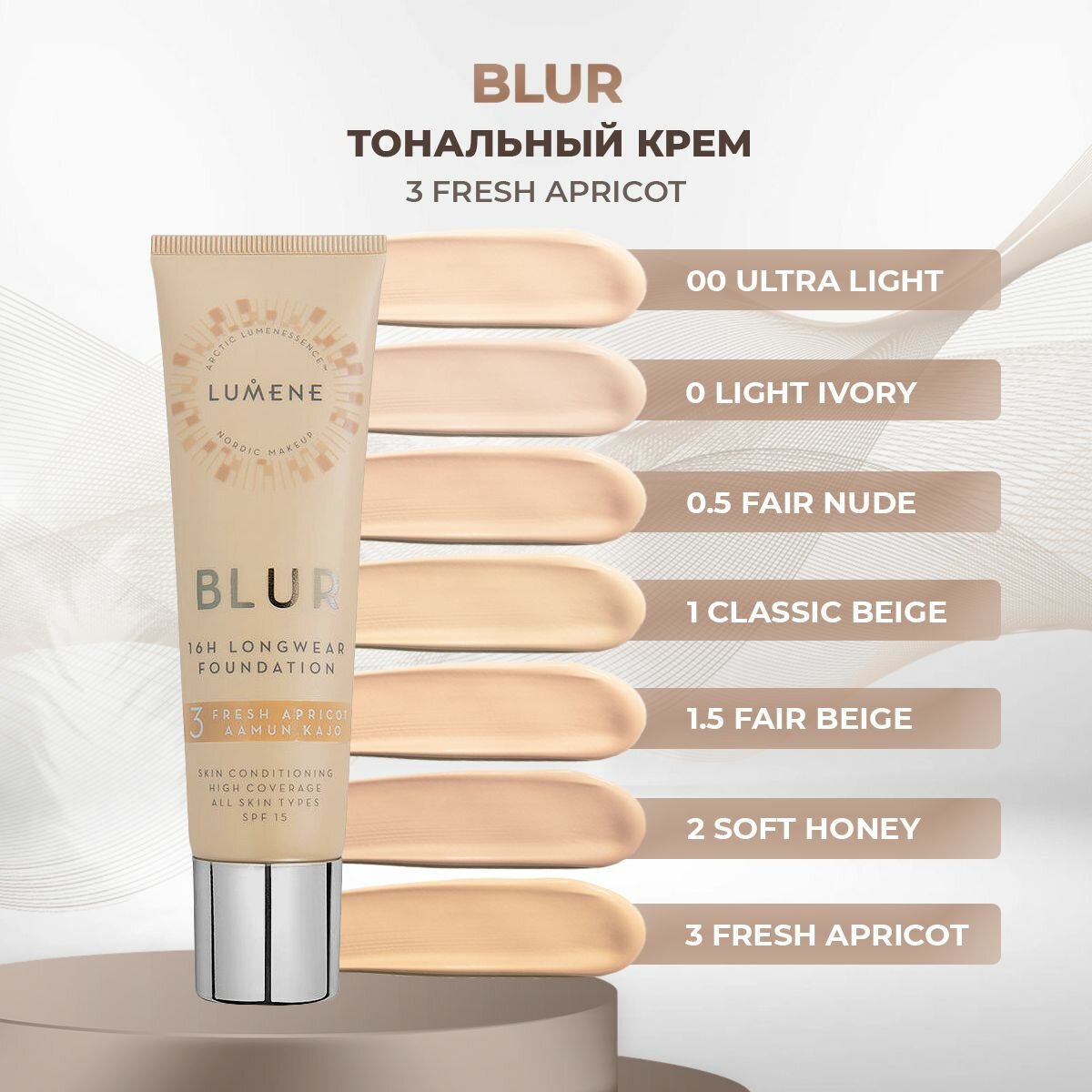 LUMENE Тональный крем Blur Longwear 16H с SPF15 тон 3 Fresh Apricot-Кремовый бежевый 30 мл Финляндия информация:
