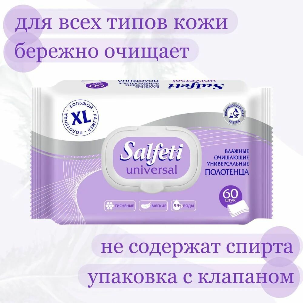 Полотенца влажные Salfeti Universal очищающие универсальные, 60 шт, XL 2пачки информация: