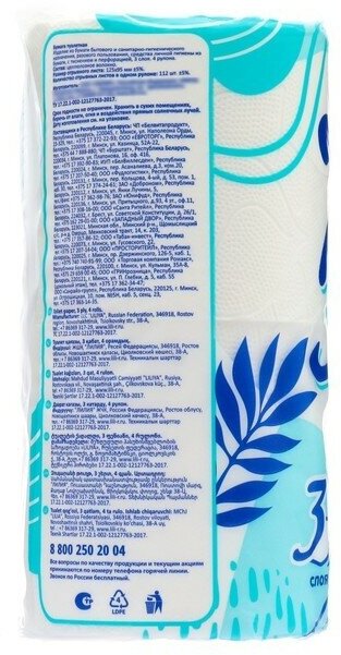 Туалетная бумага Pero трехслойная Light 4 рул, белый информация:
