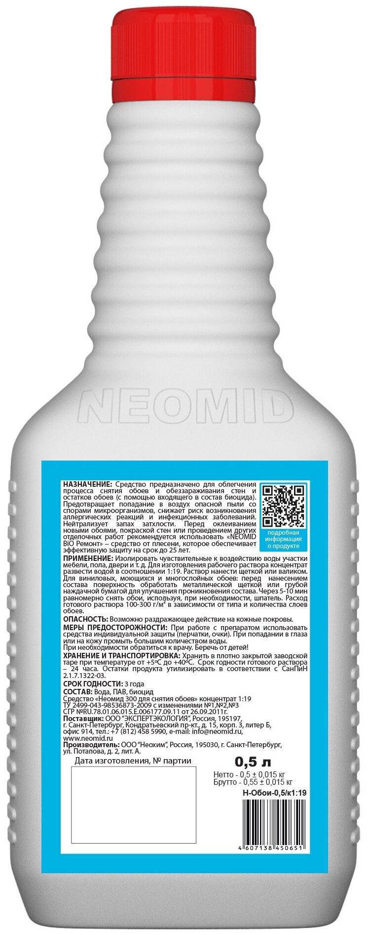 NEOMID (неомид) 300 Состав для снятия обоев 0,5л. концентрат 1:19 информация:
