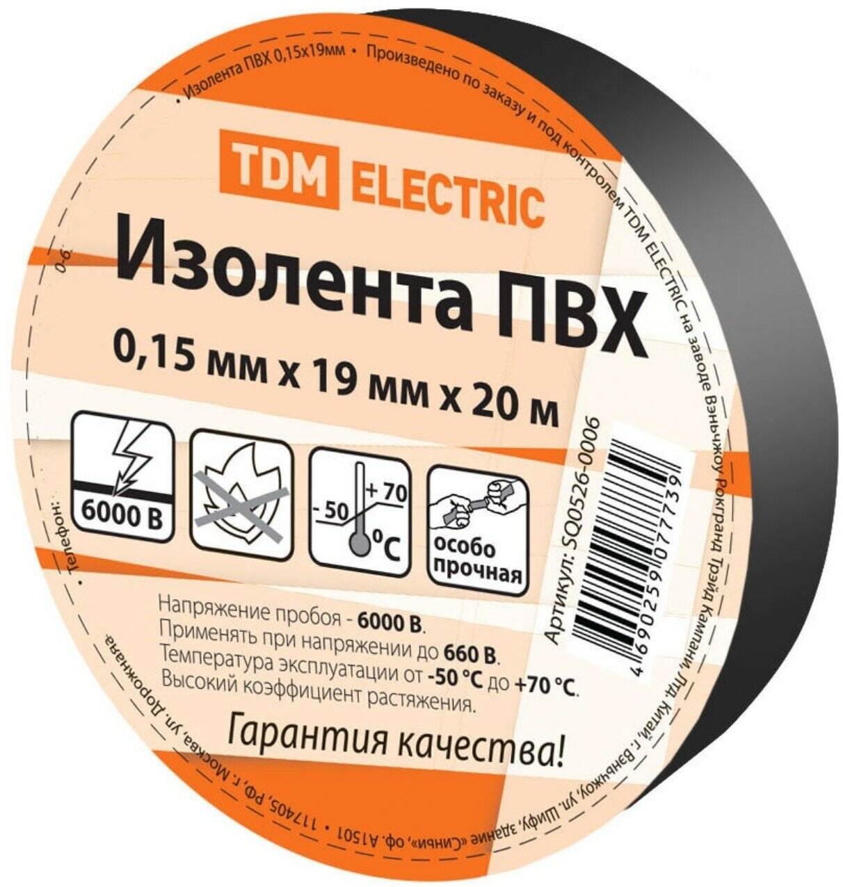 Изолента ПВХ 19ммх20м черная TDM (SQ0526-0006) информация: