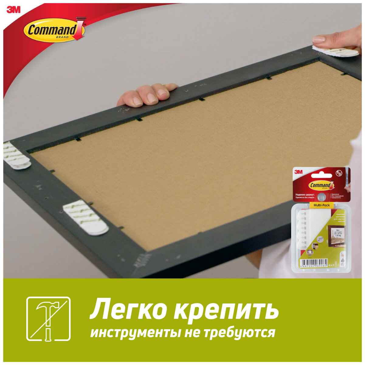 Клейкие полоски застежки вешалки для картин Command (17202), 16 мм x 5см, белые малые 4пары/уп, 3 уп 700 ₽