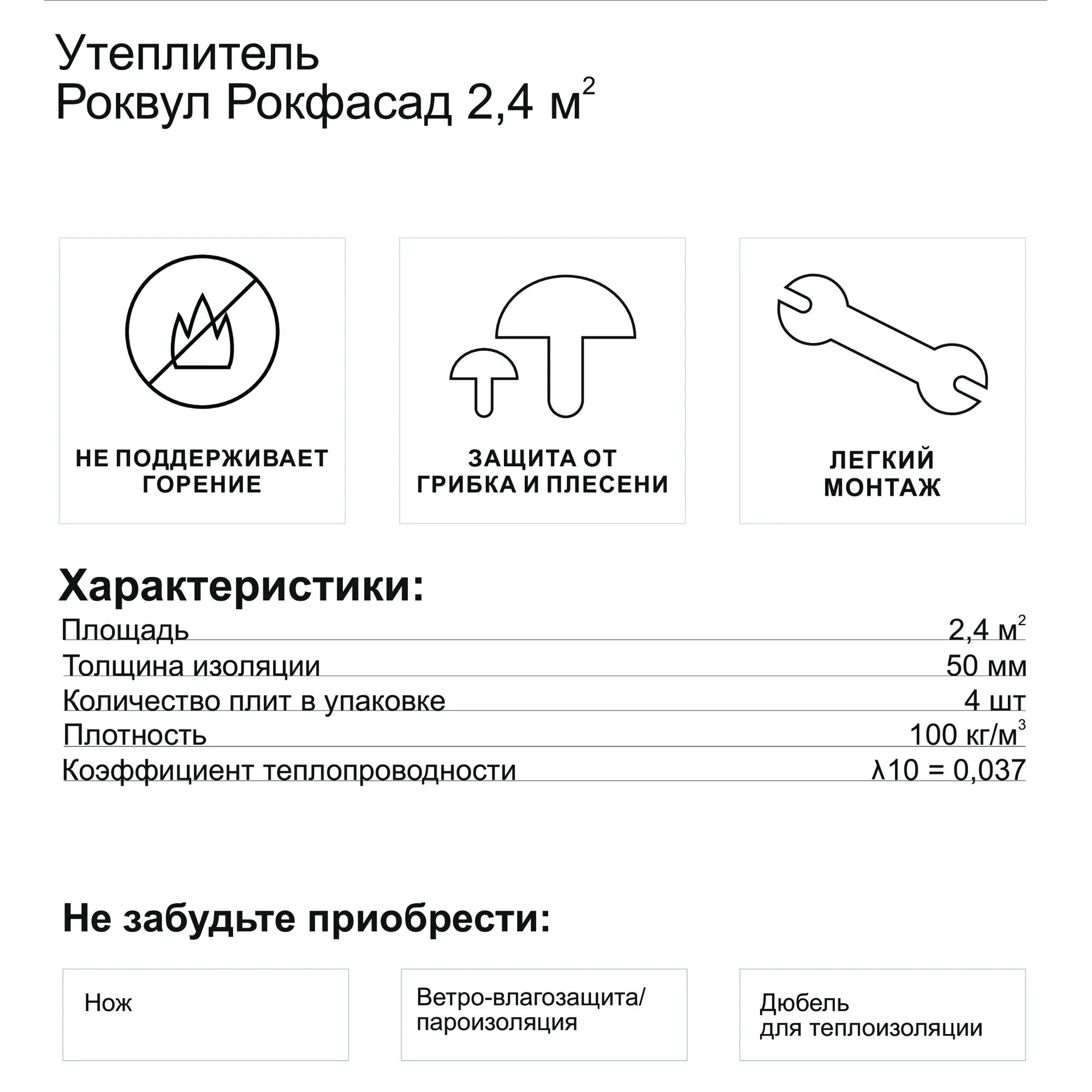 Утеплитель ROCKWOOL "Рокфасад", каменная вата, 50мм, 2,4м², 13кг информация: