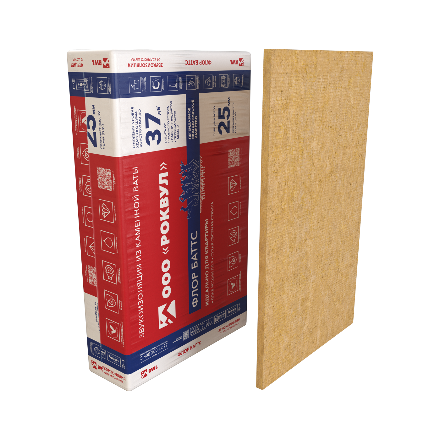 Теплоизоляция для полов Роквул "Флор Баттс" 50мм, 110 кг/м³, 0.037Вт/(м⋅K) информация: