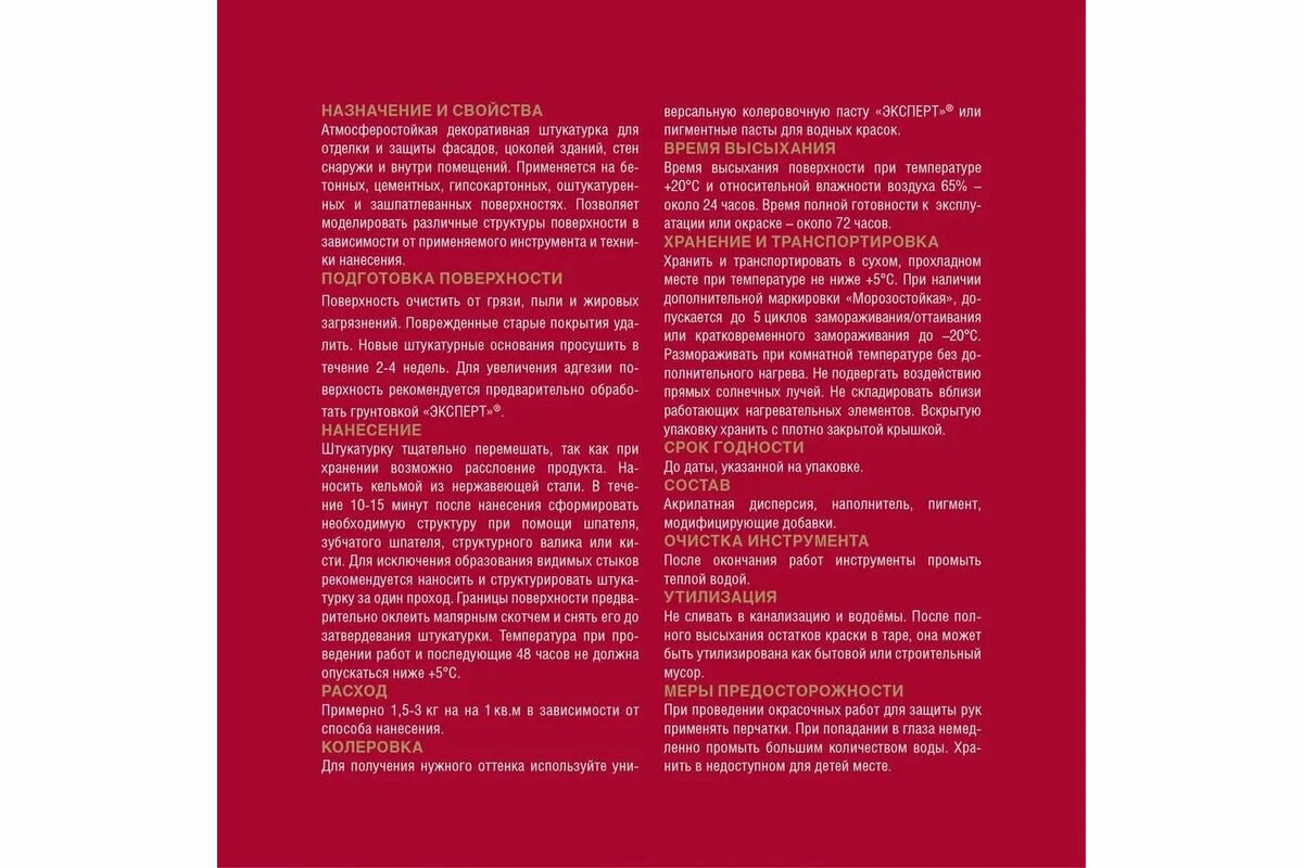Фактурная штукатурка эксперт 0.3 мм, 18 кг 21048 информация: