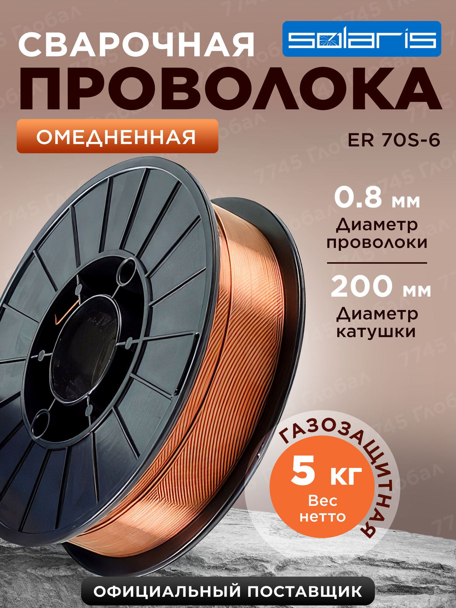Проволока сварочная 0,8 мм омедненная SOLARIS 5 кг (WM-ER70S6-08050) информация:
